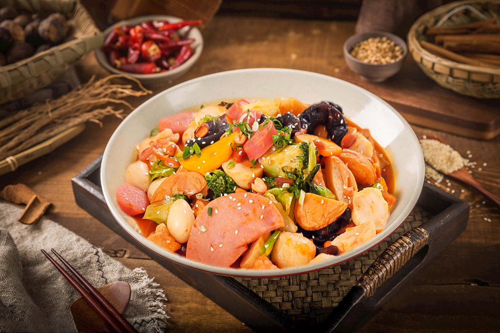 主料:全球精选食材、鲜肉类、时蔬类、风味成品、小海鲜等。
