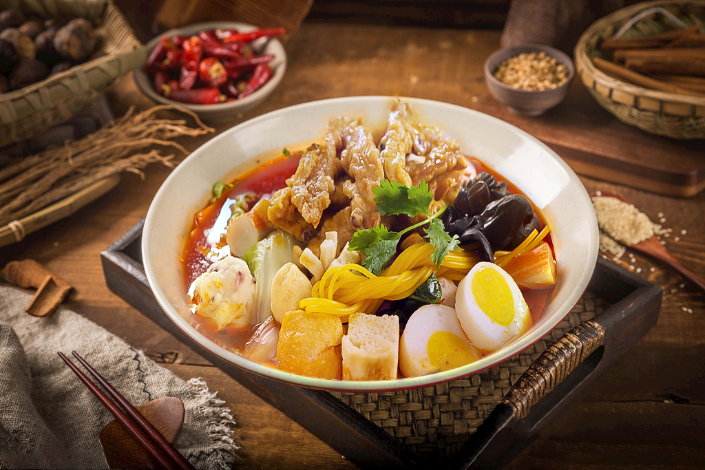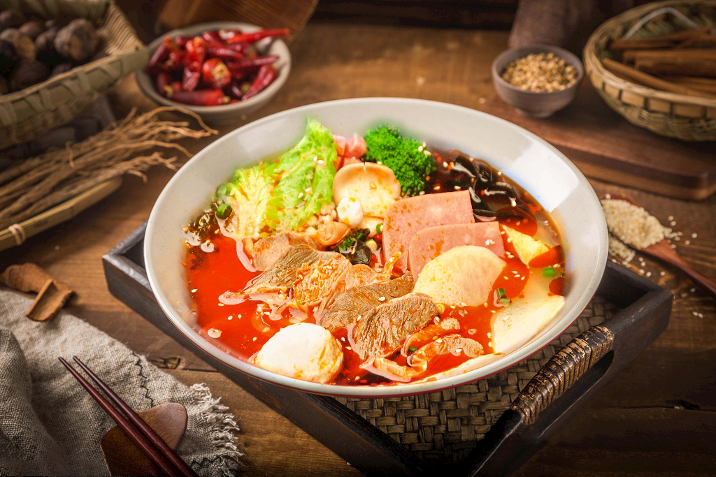 辅料:特质拌酱、大骨浓汤、咖喱酱、蒜蓉酱、特色面、芝麻酱等小料。