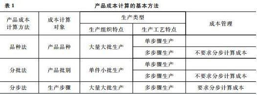 适应各种类型生产的特点和管理要求,产品成本计算方法主要包括品种法、分批法、分步法。各种方法的适用范围如表 1所示。